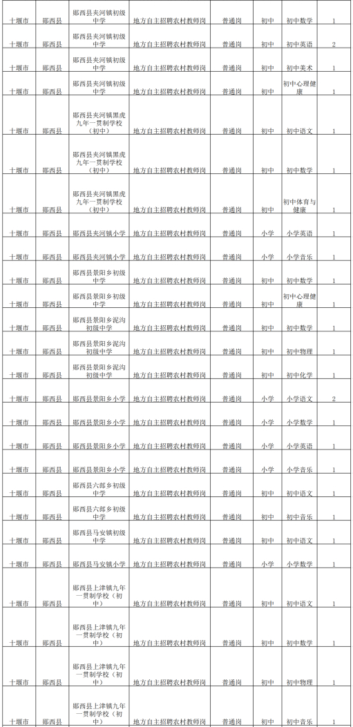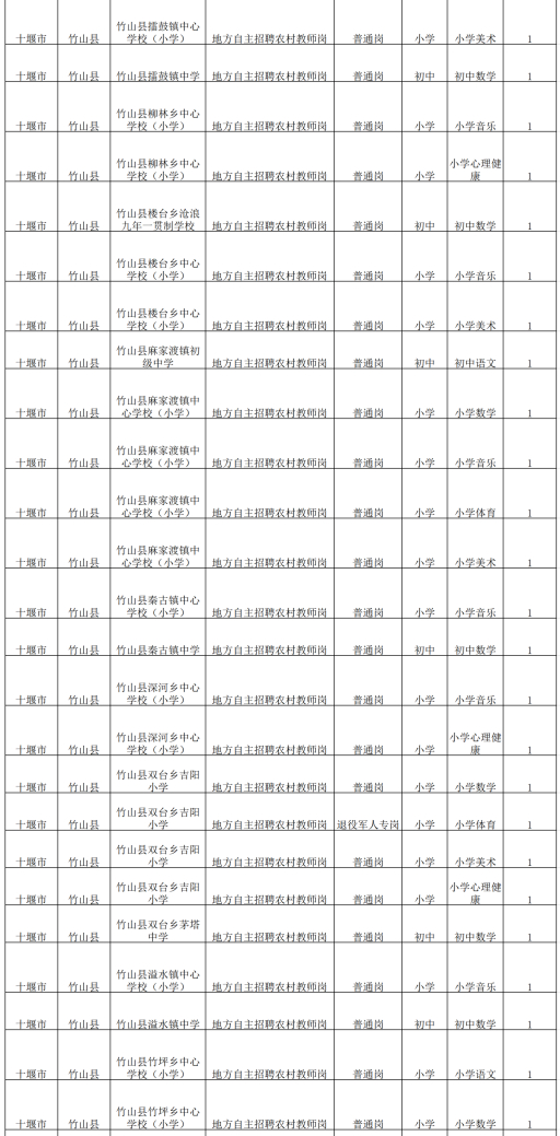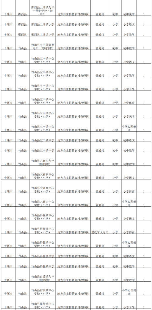 本次招聘,农村教师岗占比49.6%(182人),偏远学校均纳入招聘。例如郧西县湖北口回族乡小学提供10个岗位,竹山县双台乡幼儿园、丹江口市习家店镇中学等偏远学校同步纳编招聘。岗位设置结合学校实际需求,如郧西县马安镇初级中学补充1名学科教师,丹江口市北京路幼儿园招聘3名幼师,着力破解乡村教师结构性短缺问题。