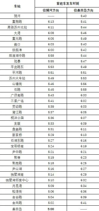 2号线桑田岛往骑河方向的首班车时间
