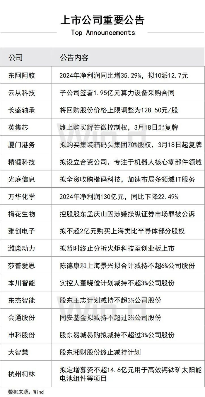 3、美国总统特朗普表示,美前总统肯尼迪遇刺案相关档案将于3月18日公布。特朗普宣布任命米歇尔·鲍曼为新任美联储副主席。特朗普表示,鲍曼自2018年以来一直在美联储理事会任职,在处理通货膨胀、监管和银行业务方面拥有丰富的专业知识。
