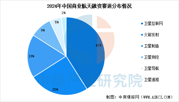 中国商业航天的投融资热度持续攀升,2024年商业航天领域融资披露金额达181亿元,已公开融资事件70个,投融资赛道主要分布在卫星互联网、火箭发射、卫星制造、卫星测控、卫星导航、卫星遥感等,分别占比41%、25%、18%、9%、5%、2%。随着政策的进一步支持和市场环境的不断优化,商业航天领域的投融资活动将更加活跃和多元化。