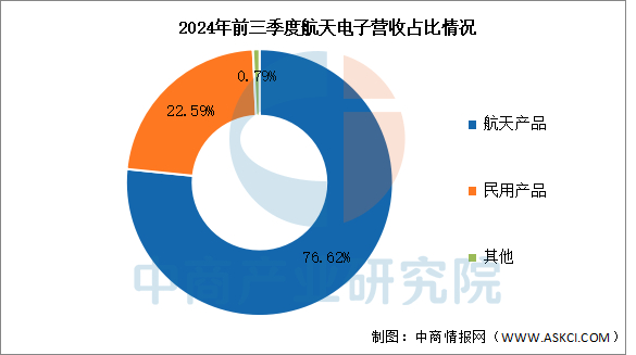 2024年前三季度实现营业收入92.34亿元,同比下降28.74%;实现归母净利润5.62亿元,同比增长9.55%。2023年主营产品包括航天产品、民用产品,营收分别占整体的76.62%、22.59%。