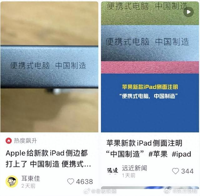 近期,有不少网友反馈,苹果新款iPad的侧面印有“中国制造”的字样。
