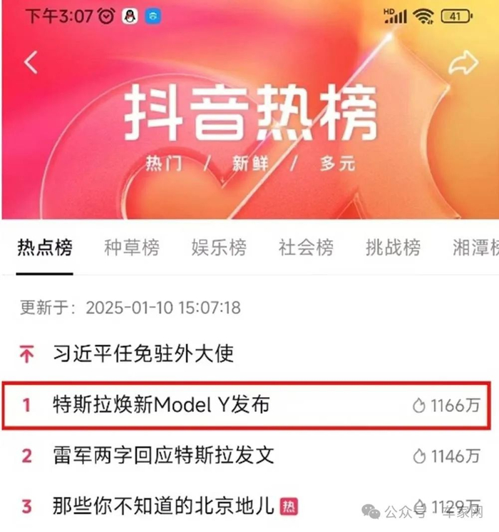 焕新Model Y上市以后,立即受到了广大消费者的热捧,焕新Model Y上市、首测、交付等各种消息先后冲上各大平台热搜,在多平台登上热搜TOP 1的顶流位置。“尽管对比”的官方宣传语在业界同行和消费者当中深入人心。