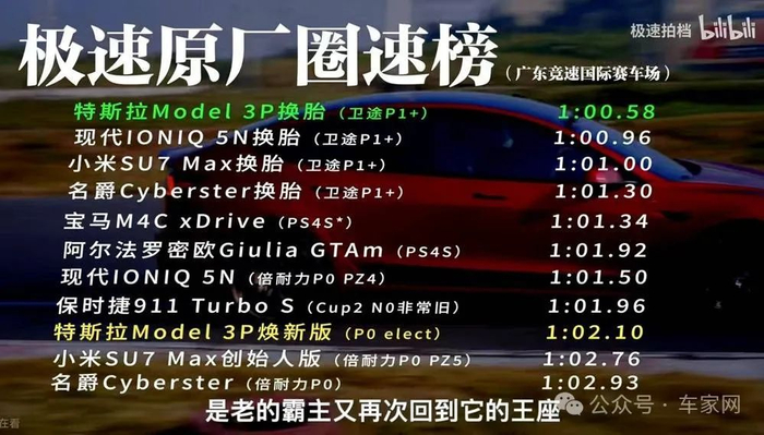 无数豪华车、性能车的对比测评都证明了这一点。比如新年刚过,全网拥有超1000万粉丝的中国头部汽车自媒体“极速拍档”就让Model 3高性能版同小米SU7 Max等其他电车同场竞技,结果Model 3高性能版成为刷新圈速的新霸主,达到1分00秒58的最佳成绩——“这可是顶级性能车,像宝马M Power、像保时捷911一样的成绩。”