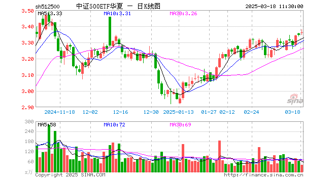 中证500ETF华夏(512500)涨0.48%,半日成交额1.38亿元