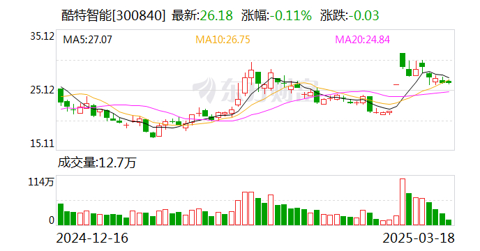 酷特智能(300840.SZ)3月17日在投资者互动平台表示,酷特AI Agent2.0预计2025年内研发升级完成,其中图片识别和AI换装功能将为C端消费者提供全新消费体验,公司目前已经在逐步推出AI换装功能,欢迎在公司门店、小程序体验。目前酷特AI Agents 2.0版本正在研发中,敬请投资者注意投资风险。
