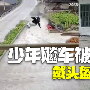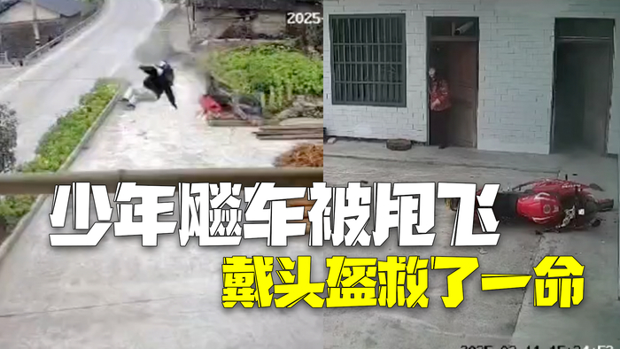 千万别侥幸还有下次!少年飚车被甩飞坠入民房:所幸戴了头盔奇迹生还_北京时间