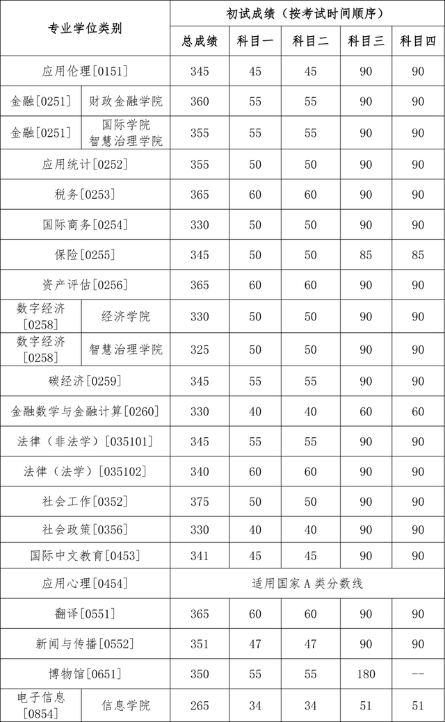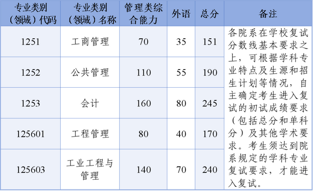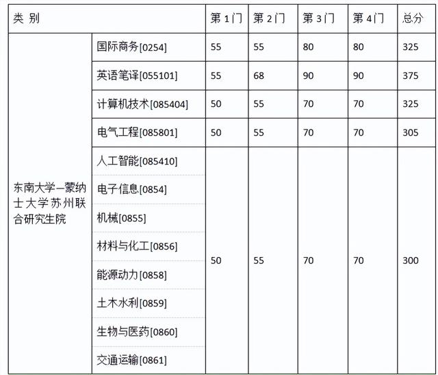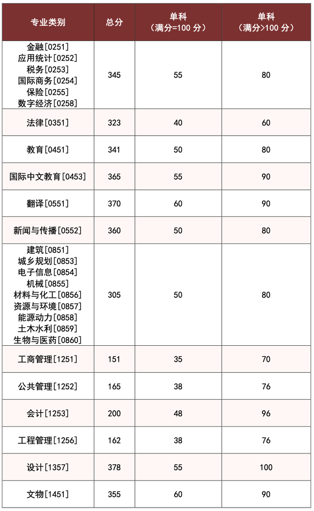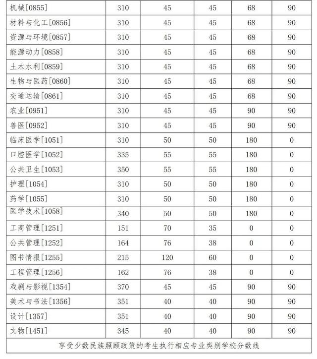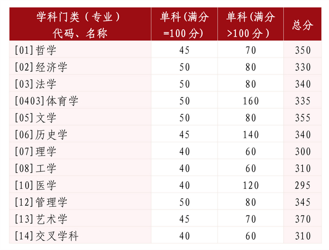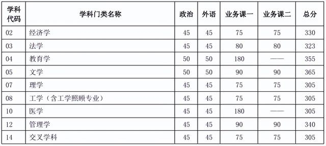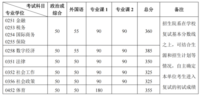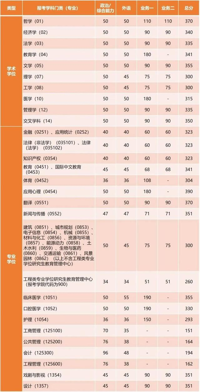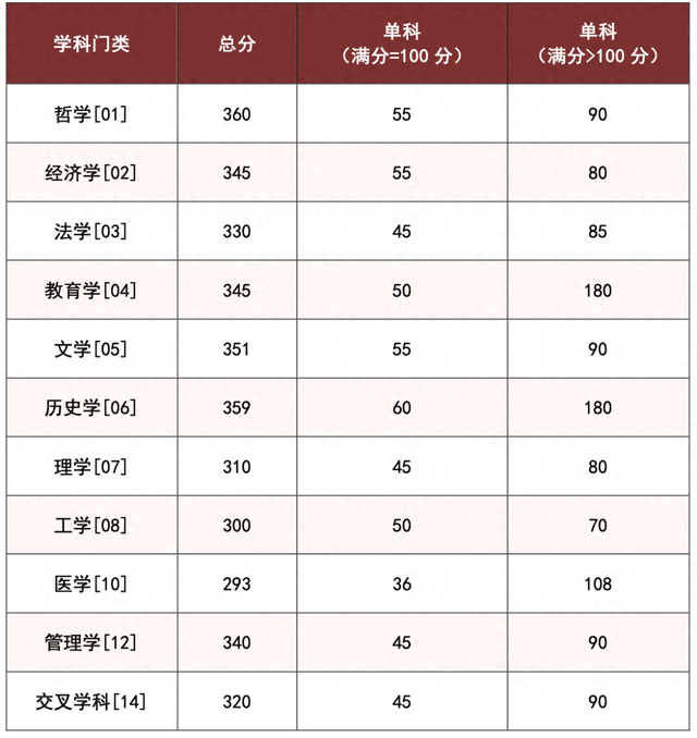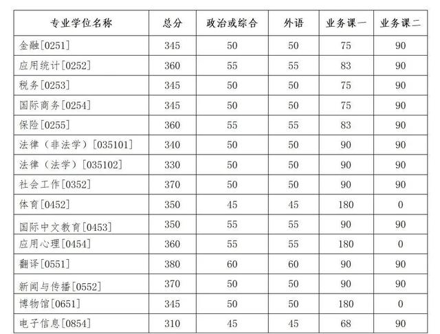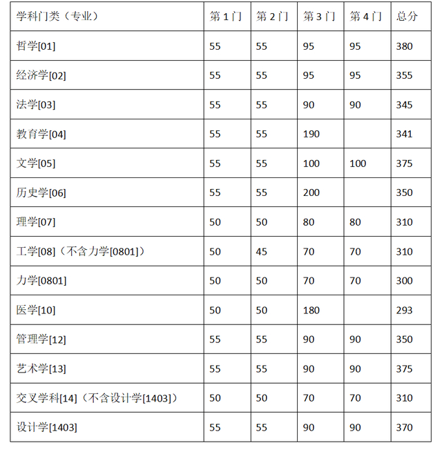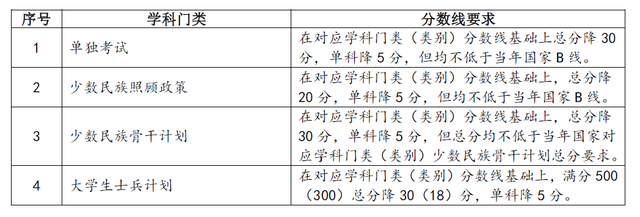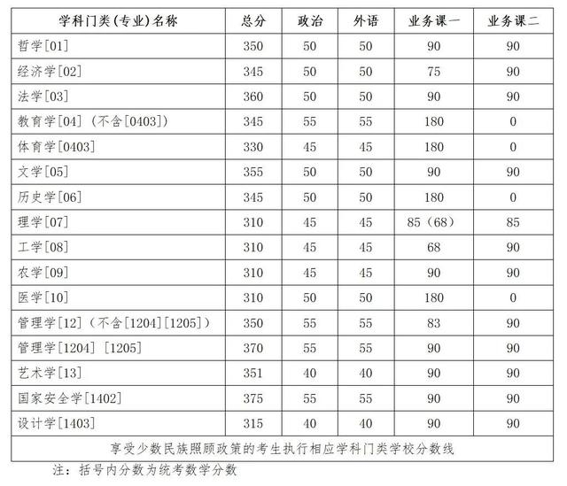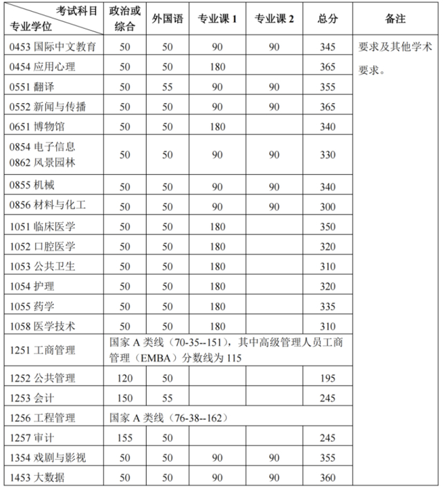 其中面向西藏地区“公共管理人才培养计划”专项,满分100分的单科成绩不低于40分、满分200分的单科成绩不低于90分、总分不低于160分;面向新疆喀什地区医学硕士专项,总分不低于235分,各单科成绩不作要求。