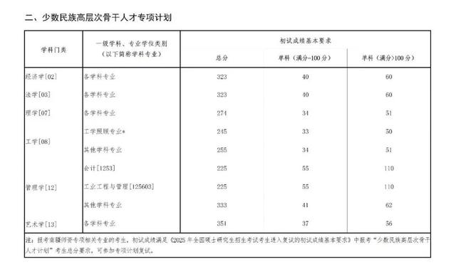 二、报考“少数民族高层次骨干人才”计划的考生,初试总分不低于所报考专业“少数民族高层次骨干人才”计划国家线,根据教育部有关文件精神及我校相关招生简章确定复试名单。
