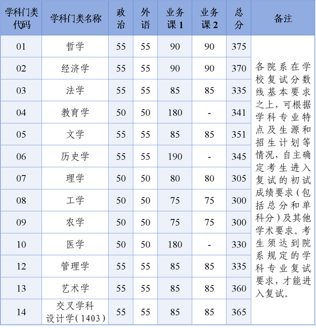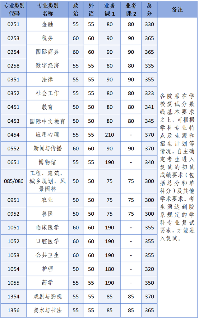 一、复试基本分数线(不含医学院)