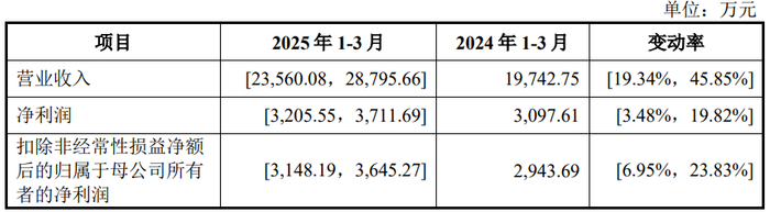 公司预计2025年1-3月实现营业收入为23,560.08万元至28,795.66万元,同比增长19.34%至45.85%;实现净利润为3,205.55万元至3,711.69万元,同比增长3.48%至19.82%;扣除非经常性损益后归属于母公司所有者的净利润为3,148.19万元至3,645.27万元,同比增长6.95%至23.83%。