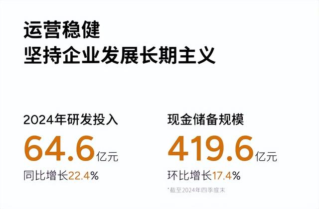 现金储备上,2024年全年现金及现金等价物、受限制现金、短期投资及定期存款为419.6亿元,较2024年第三季度净增超60亿元。