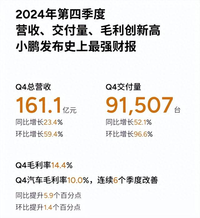 四季度总收入为人民币161.1亿元,较2024年第三季度增长59.4%。其中,汽车销售收入为146.7亿元,较2024年第三季度增长66.8%。