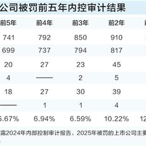 据证券时报记者统计,在被证监会处罚的上市公司中,有高达八成的企业在被罚前五年时间里,审计机构未对其内部控制出具过非标意见。
