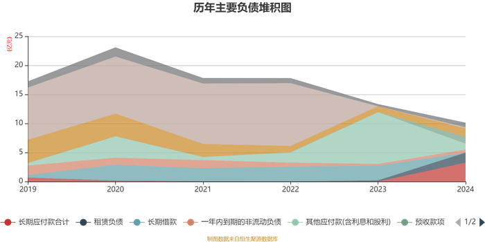 负债重大变化方面,截至2024年末,公司其他应付款(含利息和股利)较上年末减少88.63%,占公司总资产比重下降39.44个百分点;长期应付款合计占公司总资产的19.23%,上年末为0;长期借款较上年末减少100%,占公司总资产比重下降12.86个百分点;租赁负债较上年末增加803.06%,占公司总资产比重上升9.41个百分点。