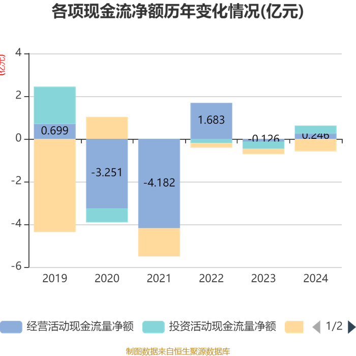 截至2024年,公司经营活动现金流净额为2459.55万元,同比增加3720.71万元;筹资活动现金流净额-5889.43万元,同比减少3455.33万元;投资活动现金流净额3715.78万元,上年同期为-3427.19万元。