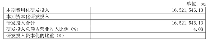 2024年全年,公司研发投入金额为1652.15万元,同比增长3.89%;研发投入占营业收入比例为4.08%,相比上年同期下降0.26个百分点。此外,公司全年研发投入资本化率为0%。