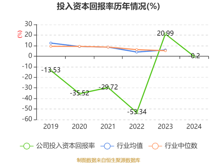 数据显示,2024年公司加权平均净资产收益率为-3.36%,。公司2024年投入资本回报率为-0.2%,较上年同期下降21.19个百分点。