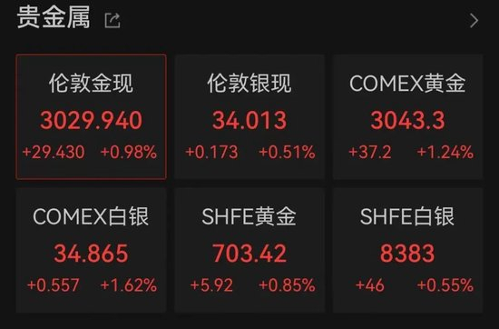 而由于黄金持续走高,美股上市金矿股上涨。巴里克黄金涨2.2%,哈莫尼金矿涨超3%。