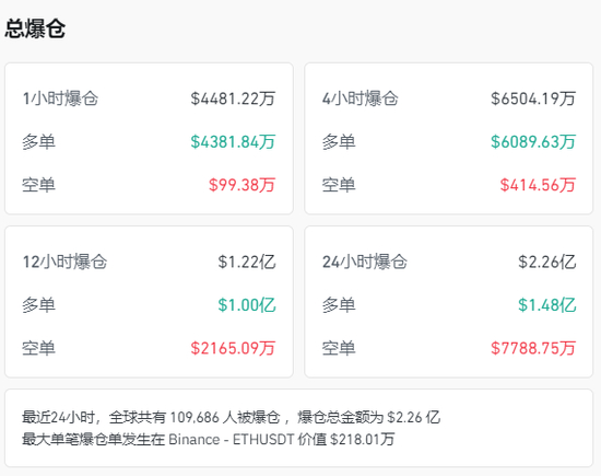 Coinglass数据显示,过去24小时内,虚拟货币共有超10万人爆仓。