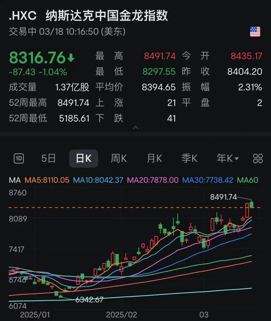 此外,中概股也陷入调整,截至发稿,纳斯达克中国金龙指数跌超1%,个股方面,腾讯音乐暴涨,该公司去年总收入达到284亿元,还最新宣布了10美元的回购计划。