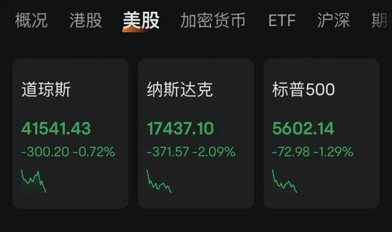 晚间,美股集体低开,随后三大股指在低开的情况下继续跳水,纳指更是跌超2%。