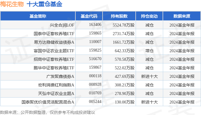 持有梅花生物最多的基金为兴全合润LOF,目前规模为228.7亿元,最新净值1.6277(3月18日),较上一交易日上涨0.75%,近一年上涨15.41%。该基金现任基金经理为谢治宇。