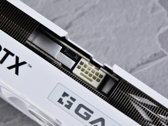 供电部分采用单个16pin的12V-2X6新协议接口,可实现更加稳固可靠的连接。供电接口旁边可见厚实的金属框架,以及RGB与主板的灯效同步接口。值得一提的是,这款显卡的用料堪称豪华,采用12层短PCB,以及10+4+3相供电,为高能游戏保驾护航。