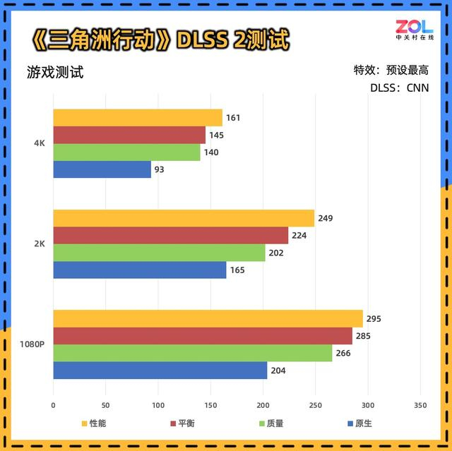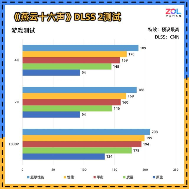 而在DLSS 3的测试中,仍然出现了DLSS 2中的问题。不过在4K分辨率下大部分DLSS成绩均在200帧左右徘徊。