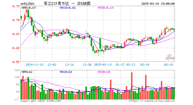 3月18日军工ETF易方达(512560)份额增加2400.00万份,最新份额13.02亿份,最新规模8.63亿元