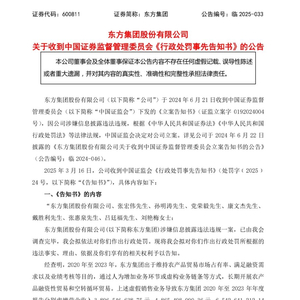 2025年3月16日晚,东方集团公告收到中国证监会发出的《行政处罚事先告知书》,认定公司2020至2023年年度报告存在虚假记载。