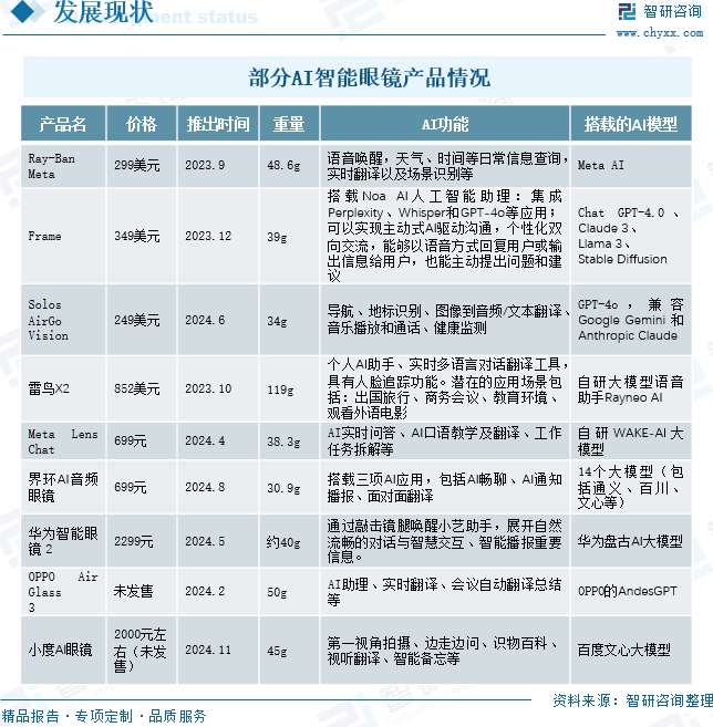 AI智能眼镜产品情况