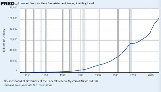 ⑤ 美国所有债务(政府、企业和消费者)总额现已超过100万亿美元