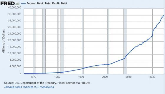 美国政府的债务已高达36万亿美元。这有多疯狂?美国的国家债务大约是罗纳德·里根首次入主白宫时的36倍。不幸的是,它继续以惊人的速度增长。即使我们看到预算削减,今年的债务仍将增加数万亿美元。我们能承受继续以这种速度积累债务吗?