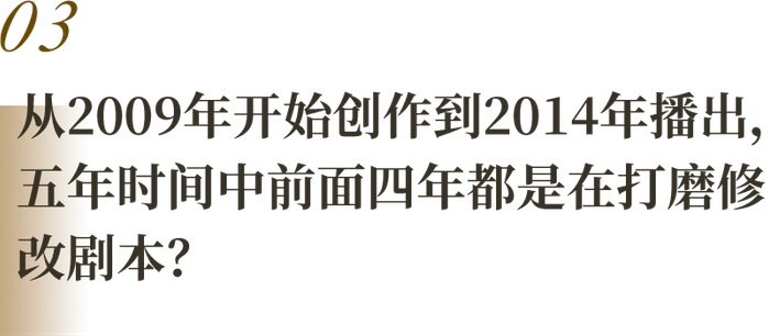 这个构思挺好的,前边一两年主要是在讨论整个结构剧情,后面就开始写。最后说实话也挺紧的,最后我就一个人关在四川的一个庙里面待了有三个月,从头到尾统了一遍,当时(写了)50多万字的一个剧本。