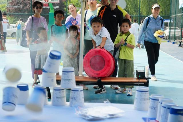 社区亲子家庭参与科创街科普活动。