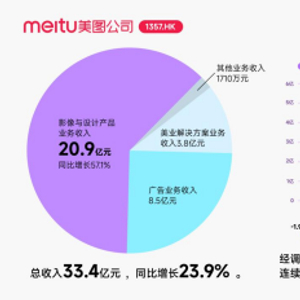 美图公司介绍,其总收入与净利润的增长主要得益于AI技术高度融入影像与设计产品,持续提升功能效果,带动高毛利的付费订阅收入快速攀升。33.4亿元的总收入主要包括:影像与设计产品业务收入20.9亿元,同比增长57.1%;广告业务收入8.5亿元,同比增长12.5%;美业解决方案业务收入3.8亿元;其他业务收入1710万元。