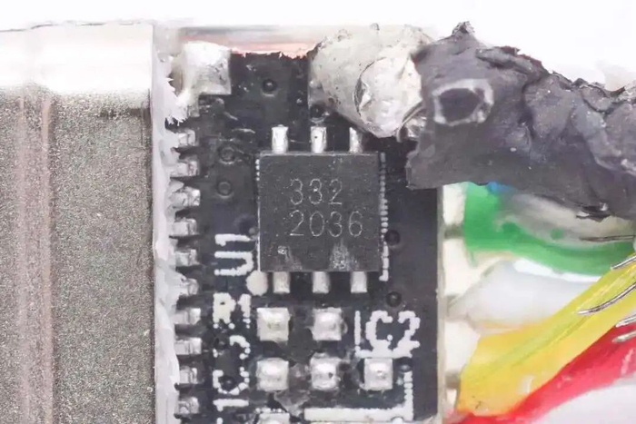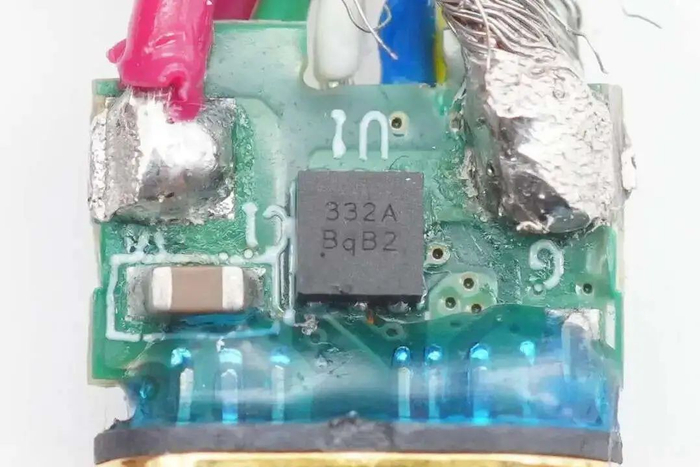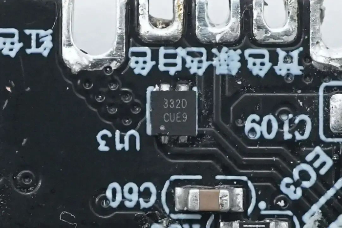 丝印332的芯片为慧能泰E-Marker芯片HUSB332。HUSB332是慧能泰推出的耐高压电子标签芯片,已经通过USB-IF协会认证,TID号:875;这款芯片针对市场上客户的各种应用和兼容性反馈,做了一系列的性能改善和可靠性提升。