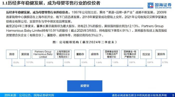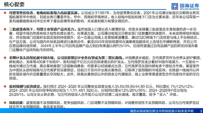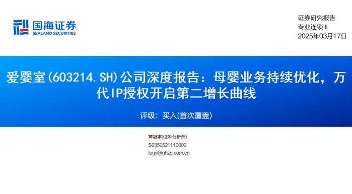 本文来自国海证券研究所于2025年3月17日发布的报告《爱婴室(603214.SH)公司深度报告:母婴业务持续优化,万代IP授权开启第二增长曲线》,欲了解具体内容,请阅读报告原文。芦冠宇S0350521110002
