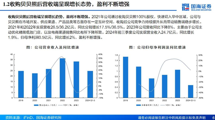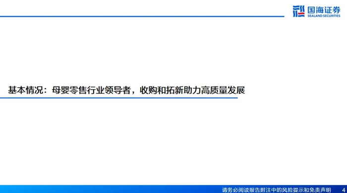 母婴零售佼佼者,收购和拓新助力高质量发展。公司成立于1997年,为母婴零售佼佼者。2021年公司通过收购贝贝熊将业务范围拓展至华中地区,目前业务已覆盖华东、华中、西南和华南地区。收入结构中奶粉和线下门店为主要来源,近年来公司采取一系列战略措施来对冲出生率下滑及疫情带来的影响,未来盈利能力有望企稳回升。