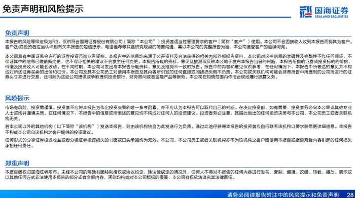 本公众号推送观点和信息仅供国海证券股份有限公司(下称“国海证券”)研究服务客户参考,完整的投资观点应以国海证券研究所发布的完整报告为准。若您非国海证券研究服务客户,为控制投资风险,请取消订阅、接受或使用本公众号中的任何信息。本公众号难以设置访问权限,若给您造成不便,敬请谅解。国海证券不会因订阅本公众号的行为或者收到、阅读本公众号推送内容而视相关人员为客户。