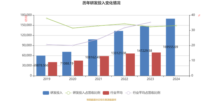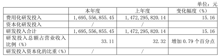 2024年全年,公司研发投入金额为16.96亿元,同比增长15.16%;研发投入占营业收入比例为33.11%,相比上年同期上升0.79个百分点。