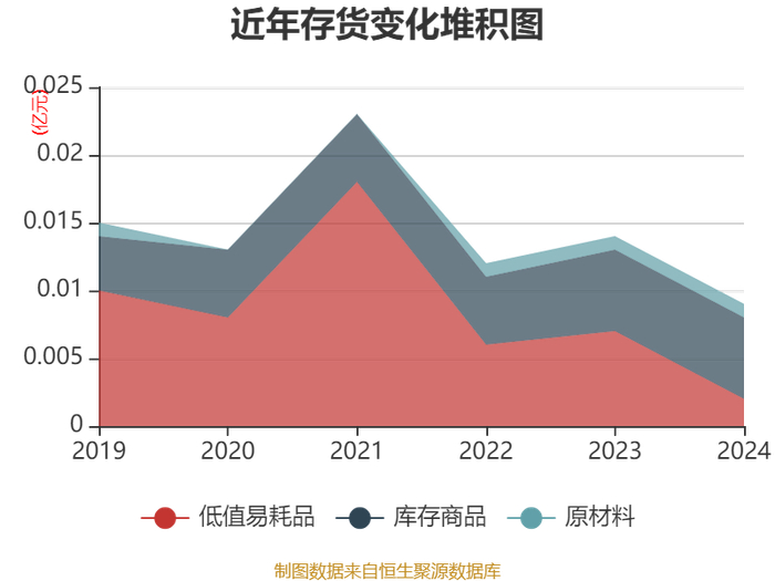 从存货变动来看,截至2024年末,公司存货账面价值为80.2万元,占净资产的0.01%,较上年末减少61.08万元。其中,存货跌价准备为17.58万元,计提比例为17.98%。