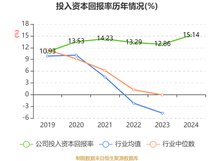 数据显示,2024年公司加权平均净资产收益率为15.51%,较上年同期上升1.33个百分点。公司2024年投入资本回报率为15.14%,较上年同期上升2.28个百分点。