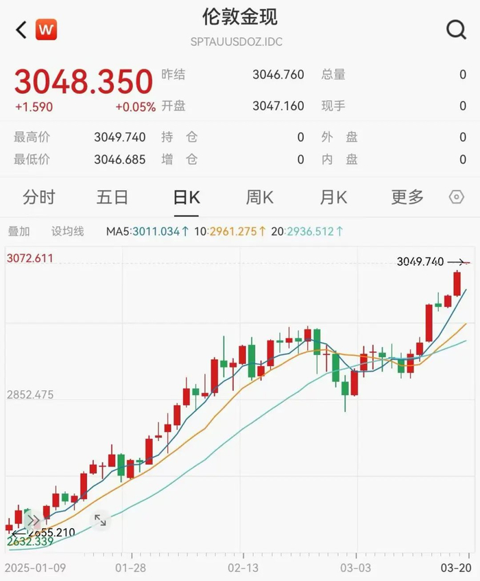 此外,现货黄金价格为3048.35美元/盎司,再次创历史新高。