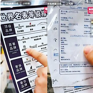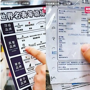 在一个仓播直播间,主播介绍一款“瑞士品牌”手表时,拿出一张“世界名表等级排行榜单”,称该品牌是“高奢品牌”。他还展示了一张签购单,称这款手表原价66800港元,直播间只要99元。