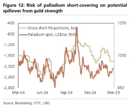 铂金价格已回升至 1000 美元上方,期货价格仍处于现货溢价状态。鉴于目前我们并未看到供需基本面有任何重大变化,期货价格的波动很可能是由关税担忧引发的整体市场失衡所致。话虽如此,考虑到供应总体受限的情况,我们也不能忽视市场可能比预期更早收紧的风险。在需求方面,欧盟修订二氧化碳排放目标以及美国推迟对汽车征收关税的消息,可能在一定程度上提振市场情绪。欧洲积极的财政政策调整也应有所帮助,因为这改善了该地区的整体经济增长前景。鉴于白金价格高昂,铂金首饰作为白金的替代品,其需求也可能受益。除投资需求外,首饰需求约占铂金总需求的 20%。