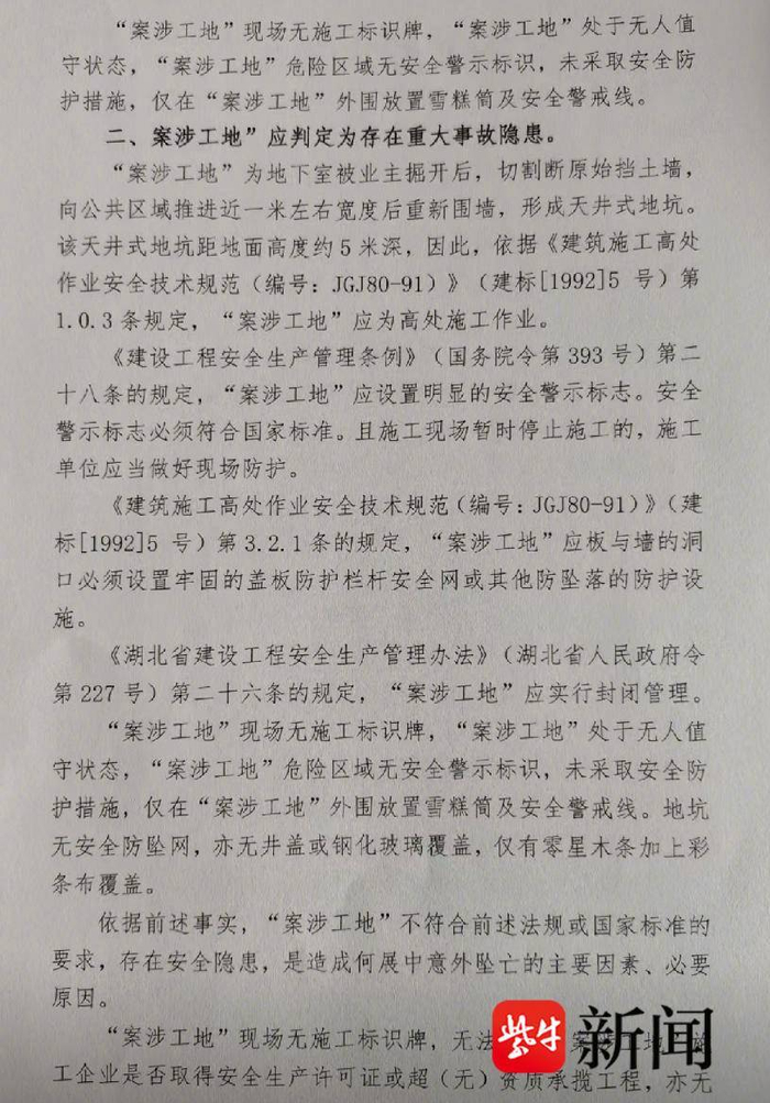 何海波还表示,依据《民法典》,在公共场所或者道路上挖掘、修缮安装地下设施等造成他人损害,施工人不能证明已经设置明显标志和采取安全措施的,应当承担侵权责任。即使“案涉工地”不存在侵占公共区域,不符合《建设工程安全生产管理条例》《湖北省建设工程安全生产管理办法》等之规定,存在安全隐患,亦应承担侵权责任。