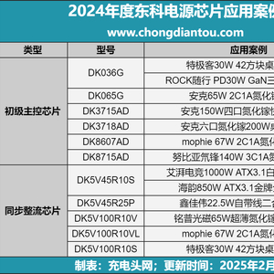 充电头网了解到,在2024年度拆解数据库中,东科电源芯片获上表中展示的数十款知名品牌快充设备采用,下文小编将为您详细介绍。