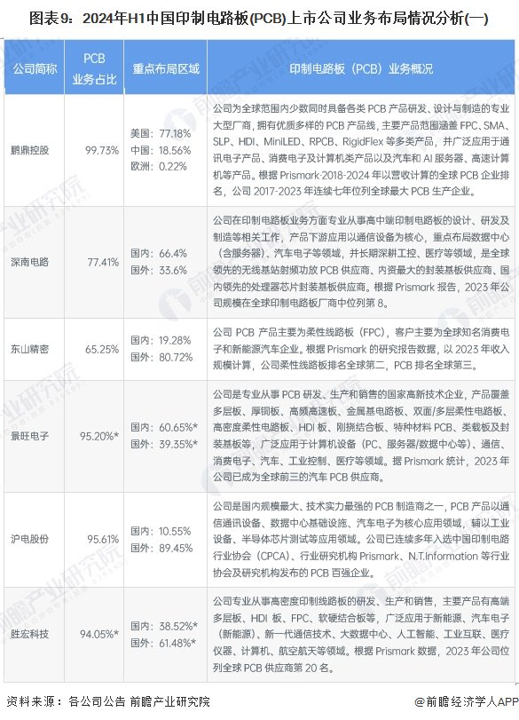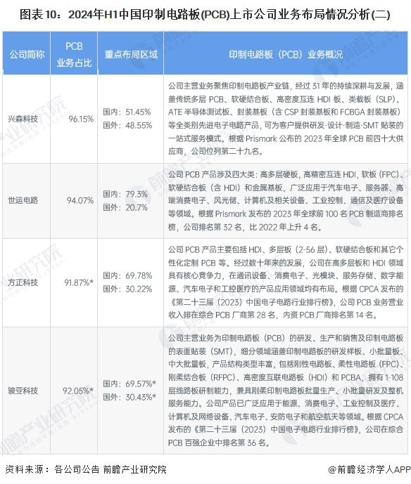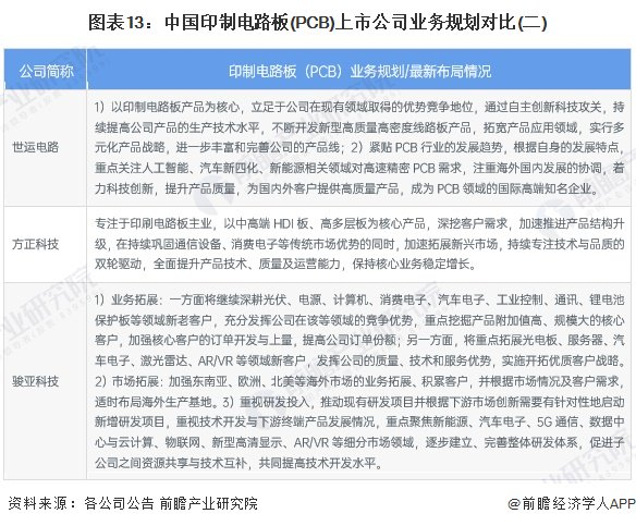 3、 印制电路板(PCB)行业上市公司业务布局对比